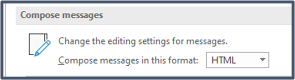 Outlook offers three format options: HTML, Plain Text and Rich Text. Of these three options, HTML format provides the most accessible experience.